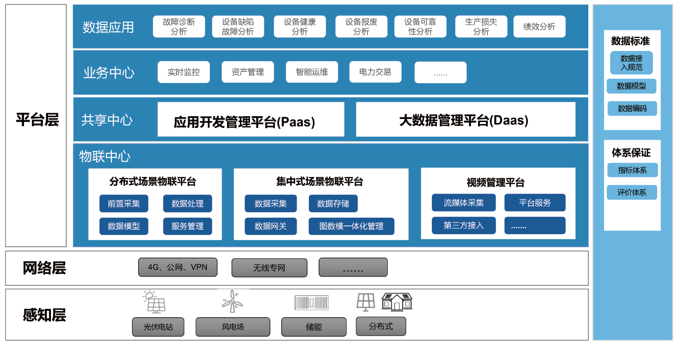基于“ 云- 边- 端”协同架构的储能大数据平台,通过对储能系统海量数据的接入和有效处理,达到对储能电站运行状态的全面监视管理,基于算法预警和故障自诊断,永福数能智慧储能监控云平台满足储能站协同控制、数据安全、场站安全和可靠运行的需求,从远程OTA升级、动态充放电策略云下发到数字化工单、智能APP,全方位打造数字化 一站式智慧运维管理平台。
